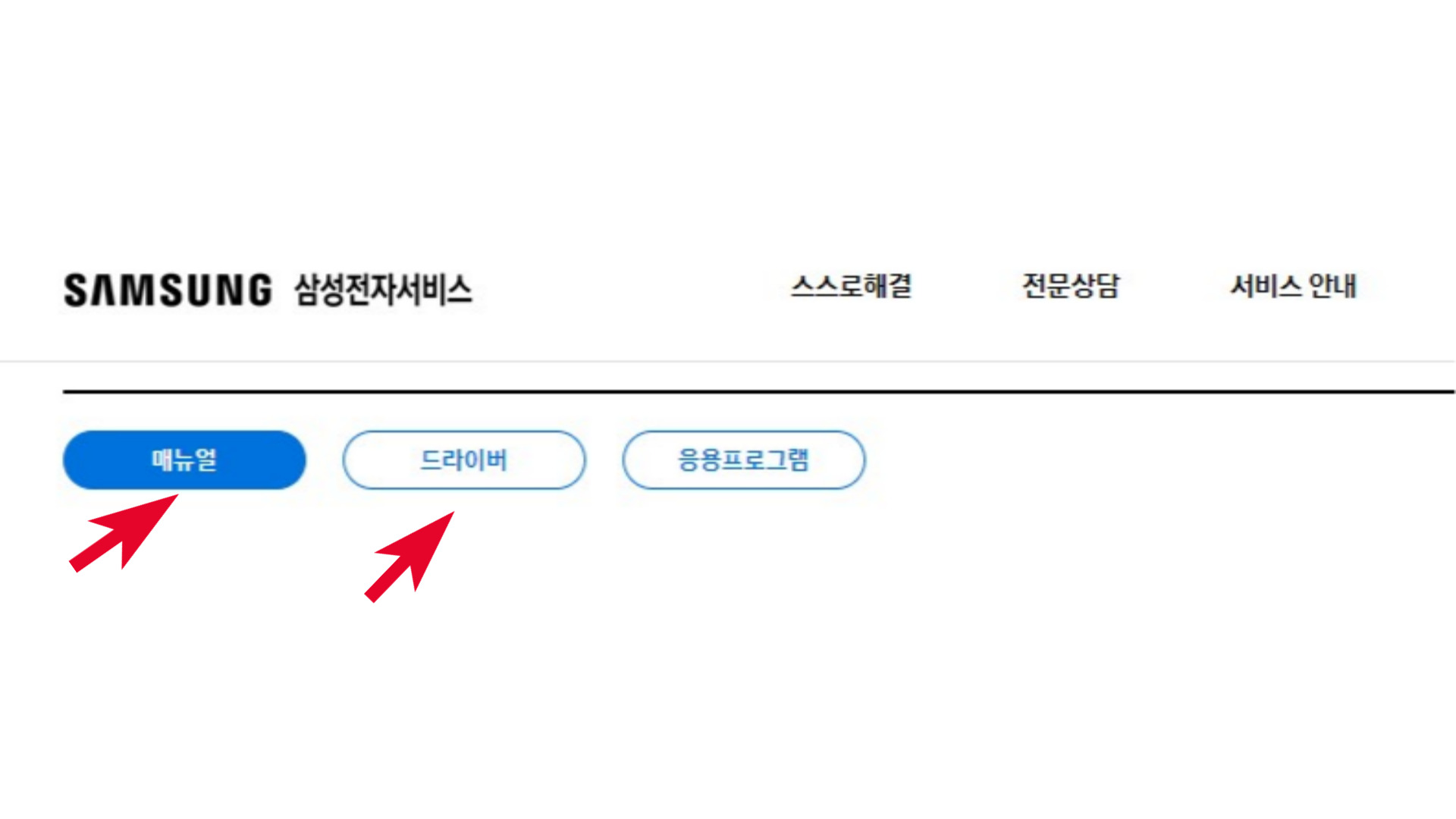 4. 모델명을 클릭하면 아래와 같이 메뉴얼이 파란색으로 활성화 되어 있는데 이를 해제하고 드라이버를 클릭해서 활성화 시켜 줍니다.