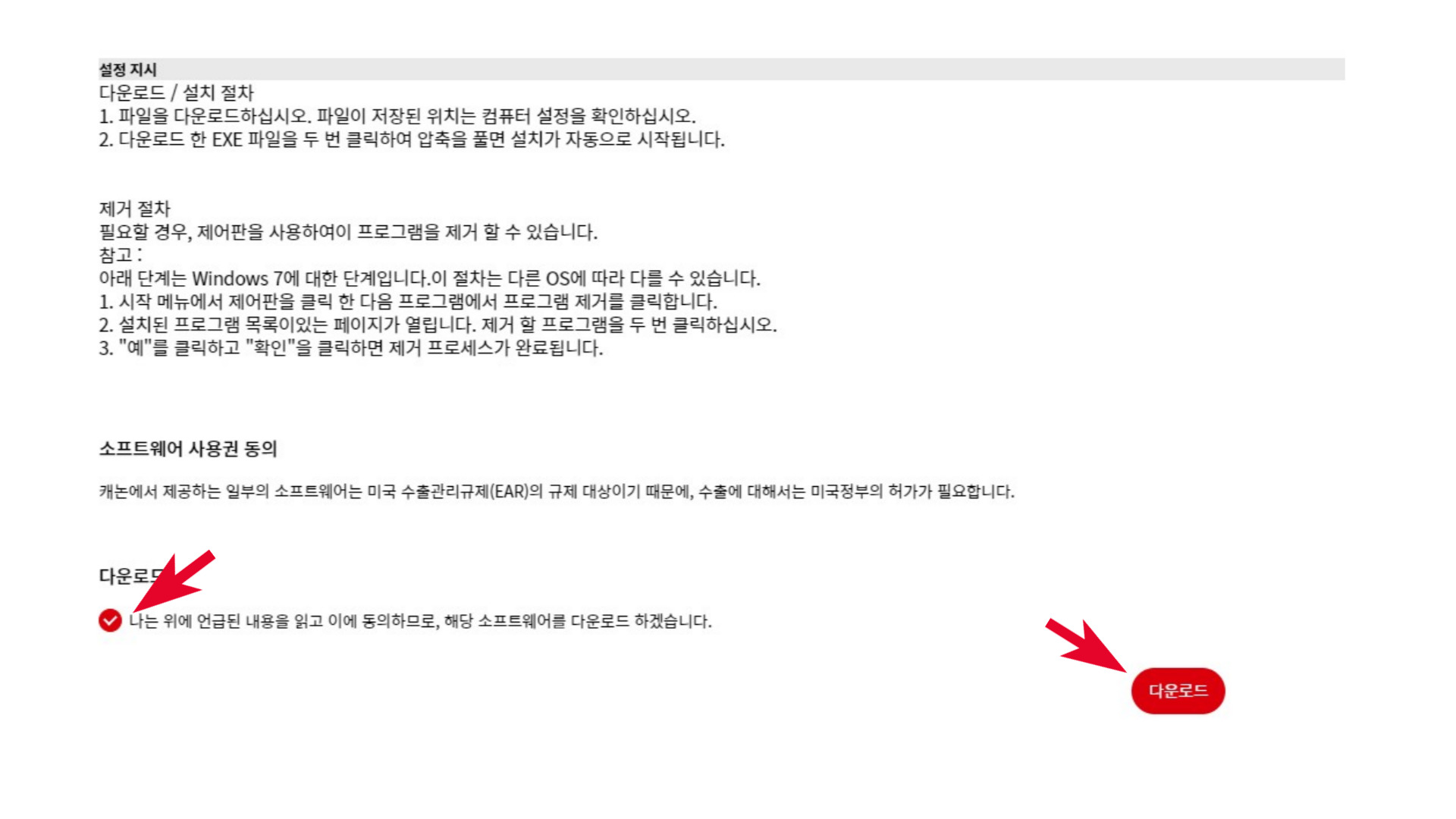 4. 스프트웨어 사용권에 동의하고 다운로드를 진행하면 된다.